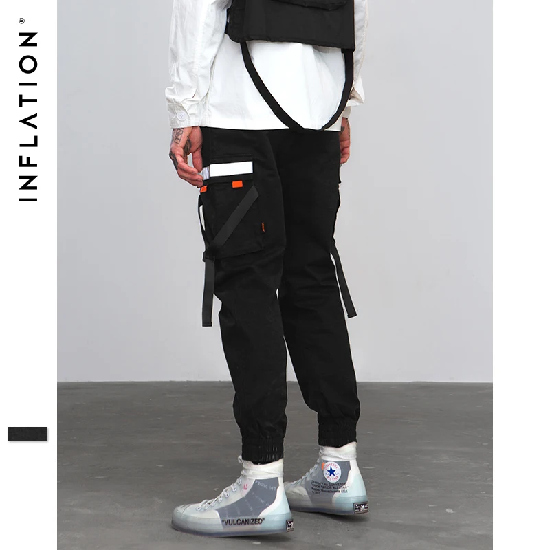 Beste Kopen INFLATIE Hip Hop Harem Joggers Broek 2018 Mannelijke Broek Mens Pocket Tapes Elastische Taille Casual Broek Joggingbroek 8860 w Goedkoop