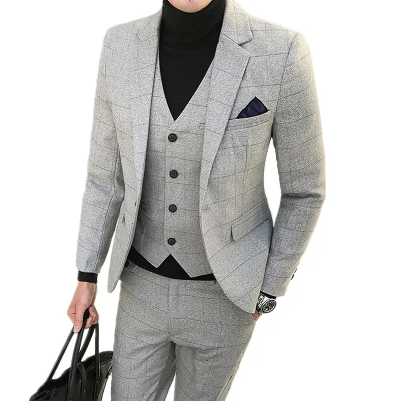 Beste Kopen Jas Broek Vest 3 Stuks Sets 2018 Fashion Nieuwe Mannen Casual Boutique Business Grid Pak Blazers Goedkoop