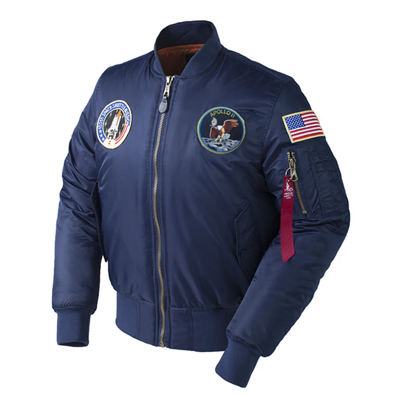 Kopen Goedkoop Winter Apollo 100th RUIMTE SHUTTLE MISSIE Dikke Gewatteerde MA1 Bomber Hiphop AMERIKAANSE Luchtmacht Warm Oversized Vlucht Jas Voor mannen Prijs.