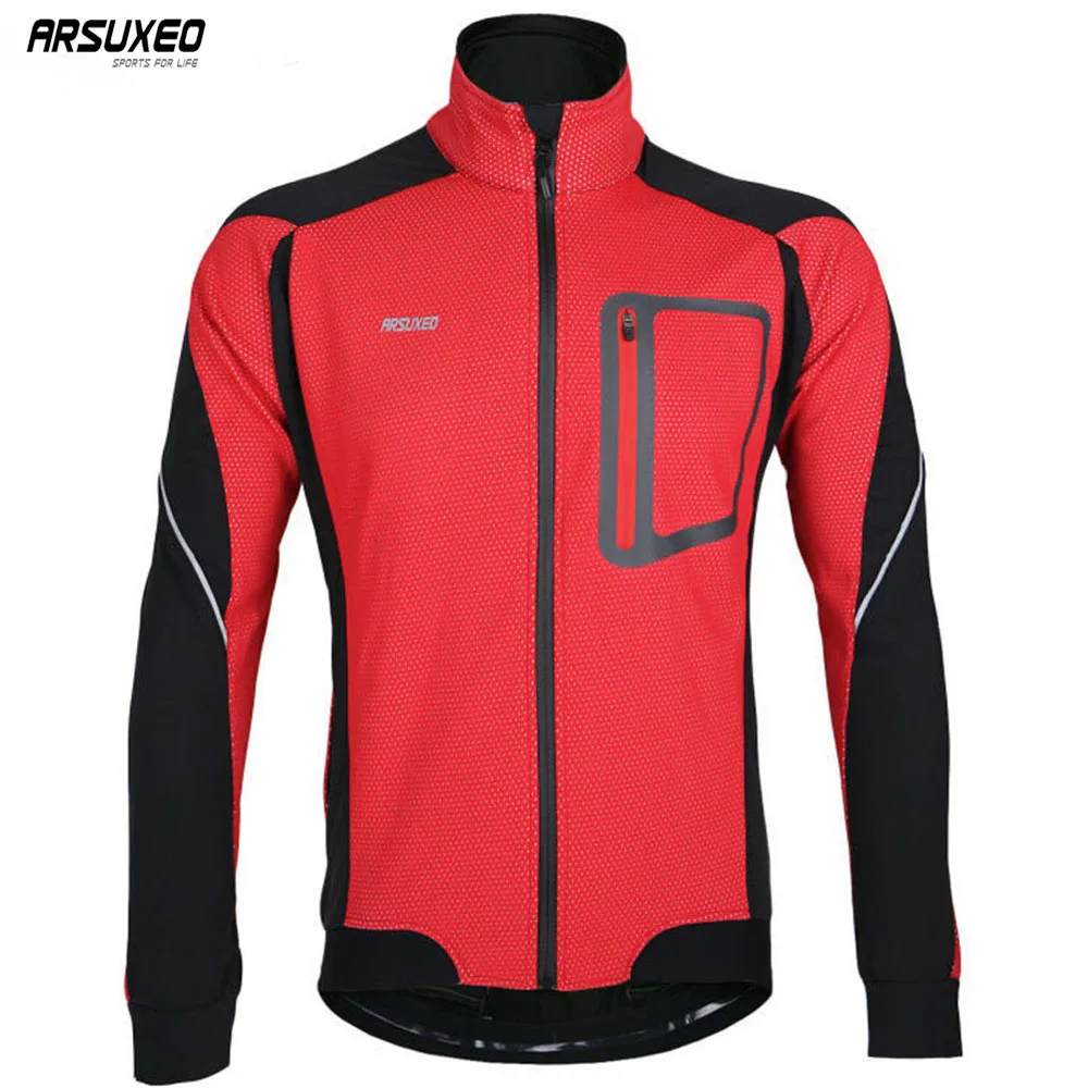 Beste Koop ARSUXEO mannen Winter Warm Up Thermische Fietsen Jas Fiets Kleding Winddicht Waterdichte MTB Mountainbike Jersey 14D Goedkoop
