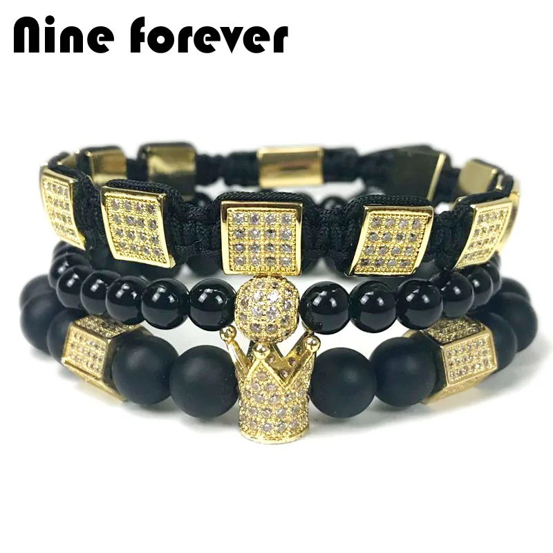 Kopen Goedkoop Negen forever natuursteen kralen armband mannen sieraden hexagon crown charm vlechten armbanden pulseira masculina bileklik Online