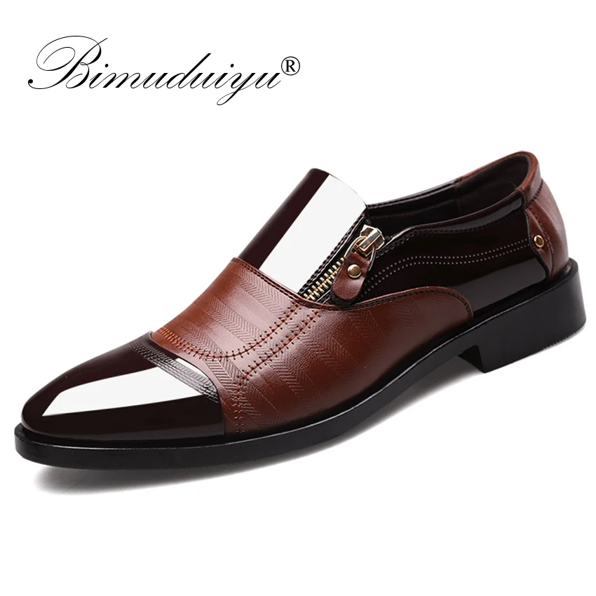 Goede Koop BIMUDUIYU Mode Oxford Zakelijke Mannen Schoenen Zachte Ademende Mannen Formele Schoenen Wees Teen Luxe merk PU Lederen Oxford Schoenen Goedkoop