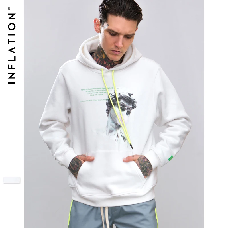 Beste Kopen INFLATIE Grappig Afdrukken Mannelijke Hoodies Streetwear Heren Trainingspak Mannelijke Hooded 2018 Nieuwe Sportkleding Fleece Hoody Sweater 8810 w Goedkoop