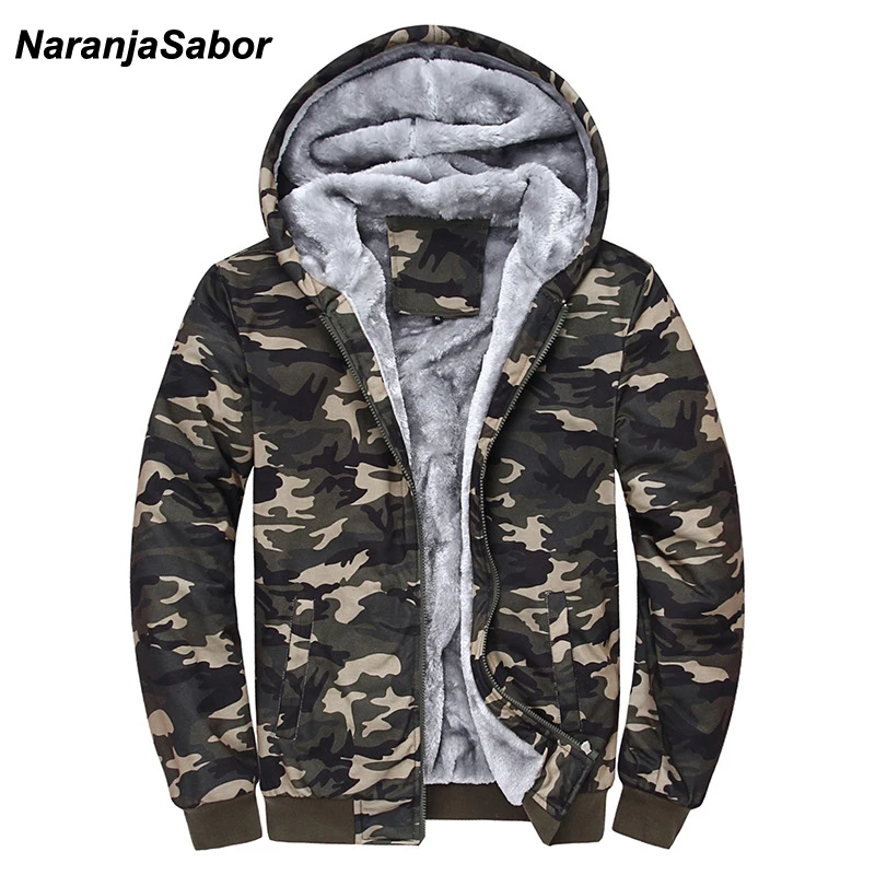 Goede Kopen NaranjaSabor 2018 Herfst Winter heren Jas Kapmantel Camouflage Hoodies Legergroen Heren Kleding Fleece Mannelijke Sweatshirts 4XL Goedkoop