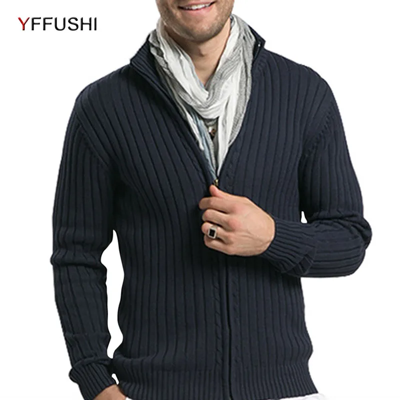 Goede Kopen YFFUSHI 2018 Nieuwe Mannen Katoenen Truien Herfst Toevallige Stand Hals Slim Strip Fit Breien Heren Truien Vesten Warme Mannen kleding Goedkoop