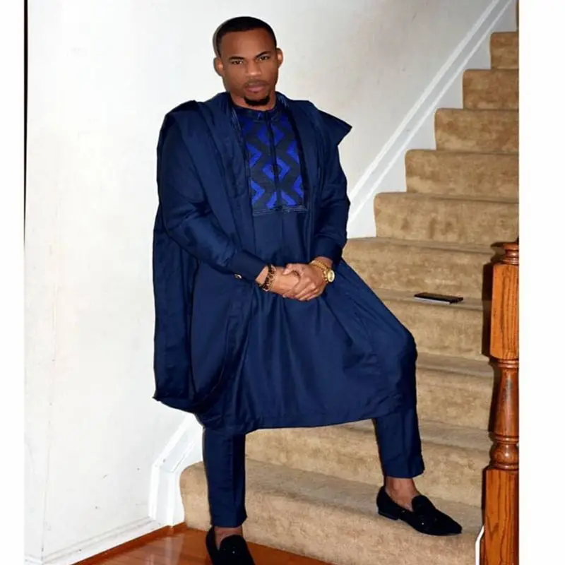 Set Borduurwerk Marineblauw Afrikaanse Mens Kleding Gewaad Goedkoop