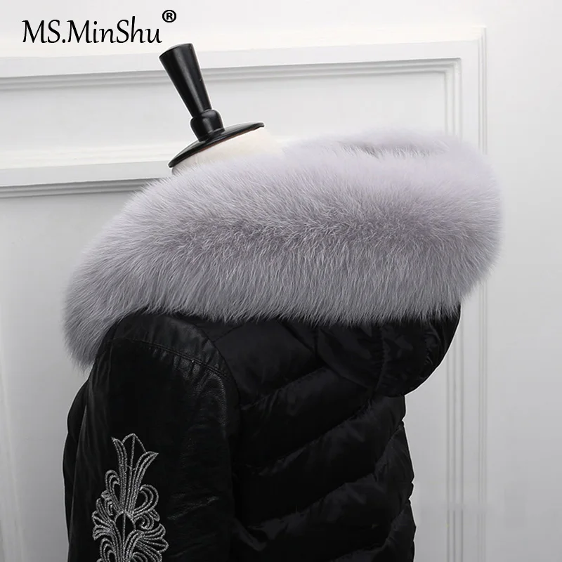 Kopen Goedkoop Ms. MinShu Vos Bontkraag Voor Kap Natuurlijke Vossenbont Hood Trim sjaal Grote Bontkraag 100% Real Fox Bontkraag Trim Custom gemaakt Online