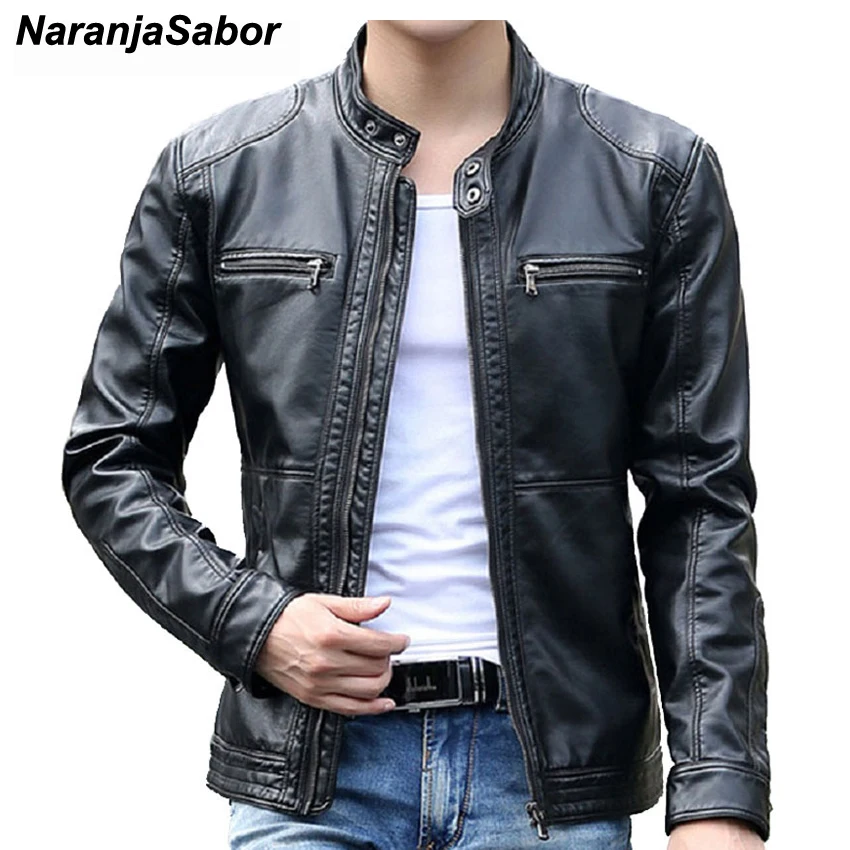 Goede Kopen NaranjaSabor Lente Herfst mannen Leren Jassen Stand Kraag Jassen Mannelijke Motorfiets Slanke Bovenkleding Heren Merk Kleding 5XL N403 Goedkoop