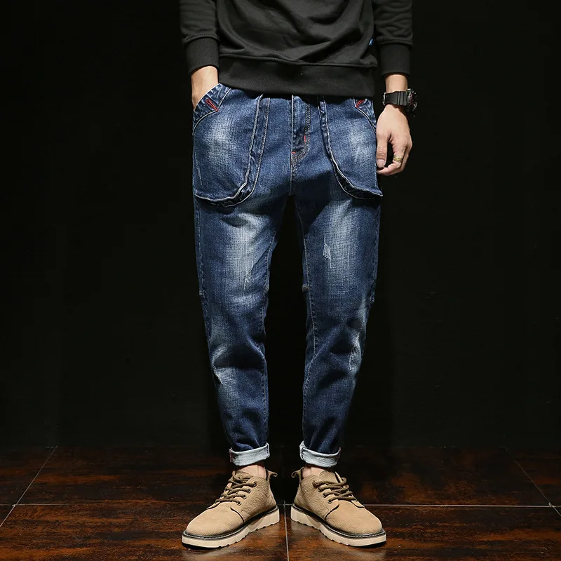 Mannelijke Grote Maat Fit Rits Casual Denim Broek Ineenstorting Hip Hop