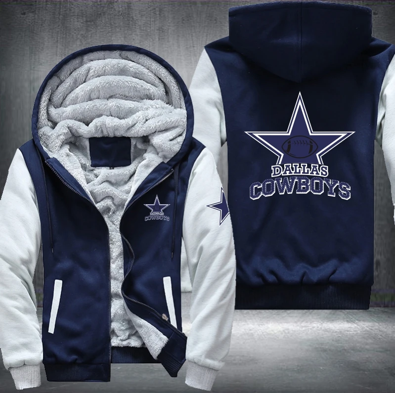 Kopen Goedkoop USA Plus EU Size Cowboys Voetbalteam mannen vrouwen Printing Patroon Dikker Fleece Rits Hoodies Sweatshirts Jasje Prijs