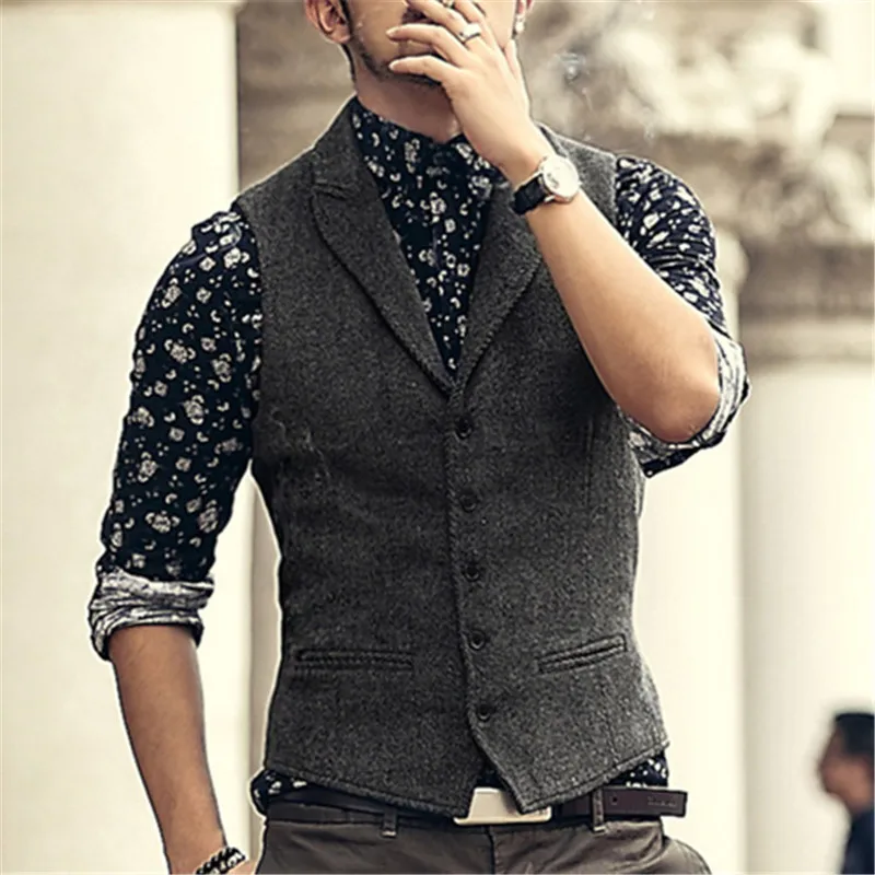 Kopen Goedkoop Mannen merk Mouwloze Jas Vest Mannen Pak Vest Mode Mannelijke Britse Stijl Slanke Wollen Katoen Single breasted Vintage vest Online