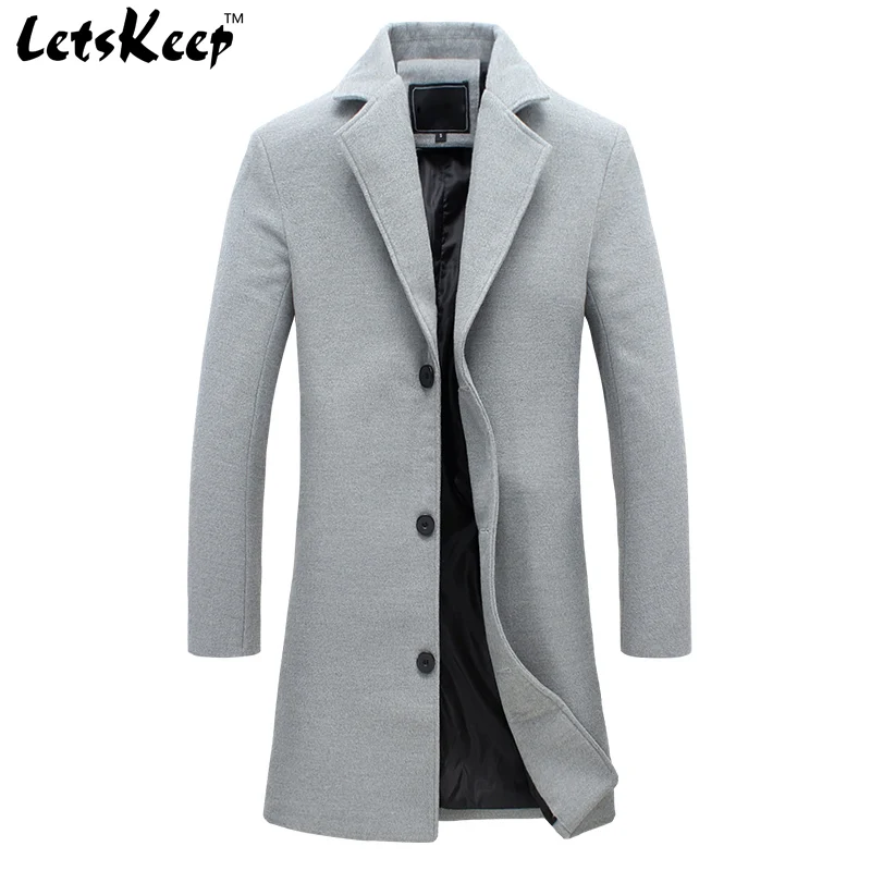Kopen Goedkoop LetsKeep nieuwe herfst winter wollen lange jas mannen warm black business overjas mens Stijlvolle wollen jas Parka S 4XL, ZA194 Online