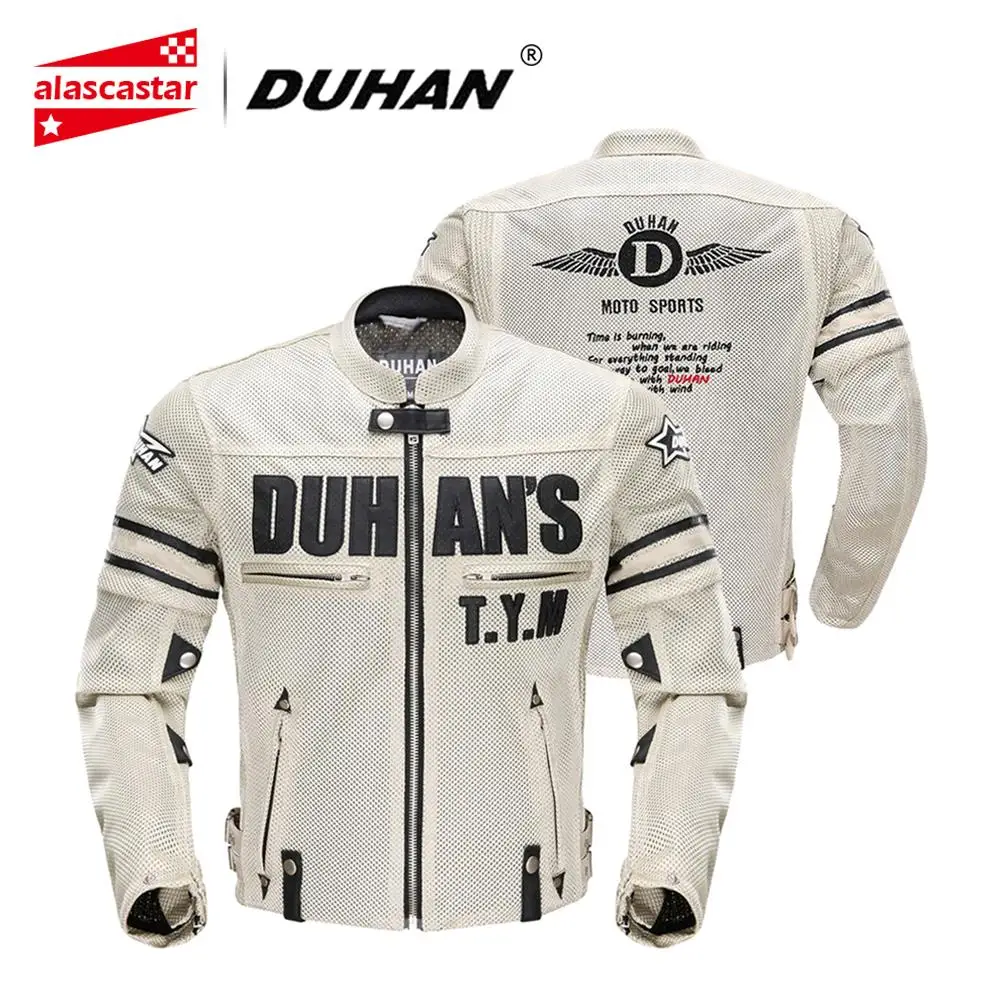 Goede Koop DUHAN Motorjas Mannen Ademend Mesh Racing Beschermende kleding Verwijderbare Protector Retro Zomer Moto Jas Rijden Kleding Goedkoop