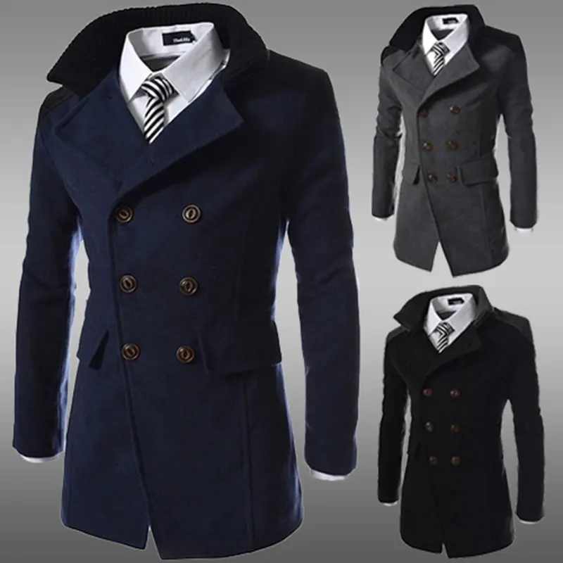 Mannen Goede Kwaliteit Double Breasted Wol Blend Overjas Voor Maat 3xl
