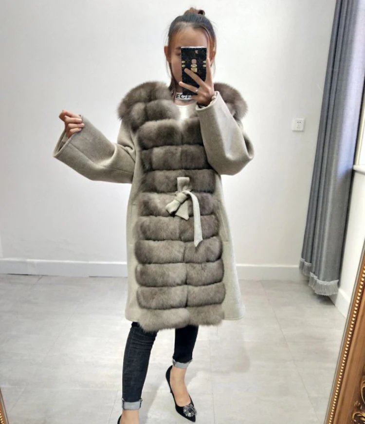 Beste Kopen Mode Dubbele Geconfronteerd Wol Blend Natuurlijke Echte Vos