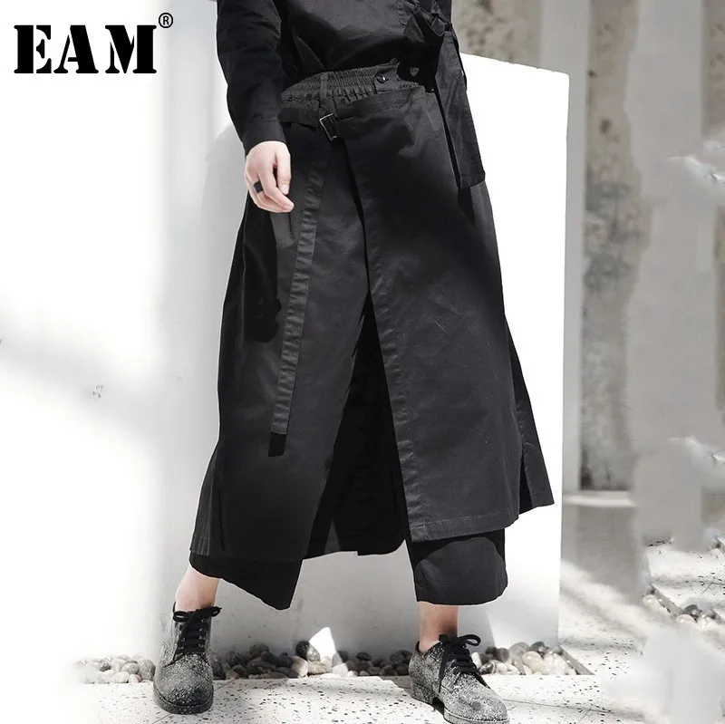 Kopen Goedkoop [EAM] 2019 Nieuwe Lente Hoge Elastische Taille Zwarte Losse Vent Losse Lange Wijde Pijpen Broek Broek Vrouwen Mode tij JI084 Online