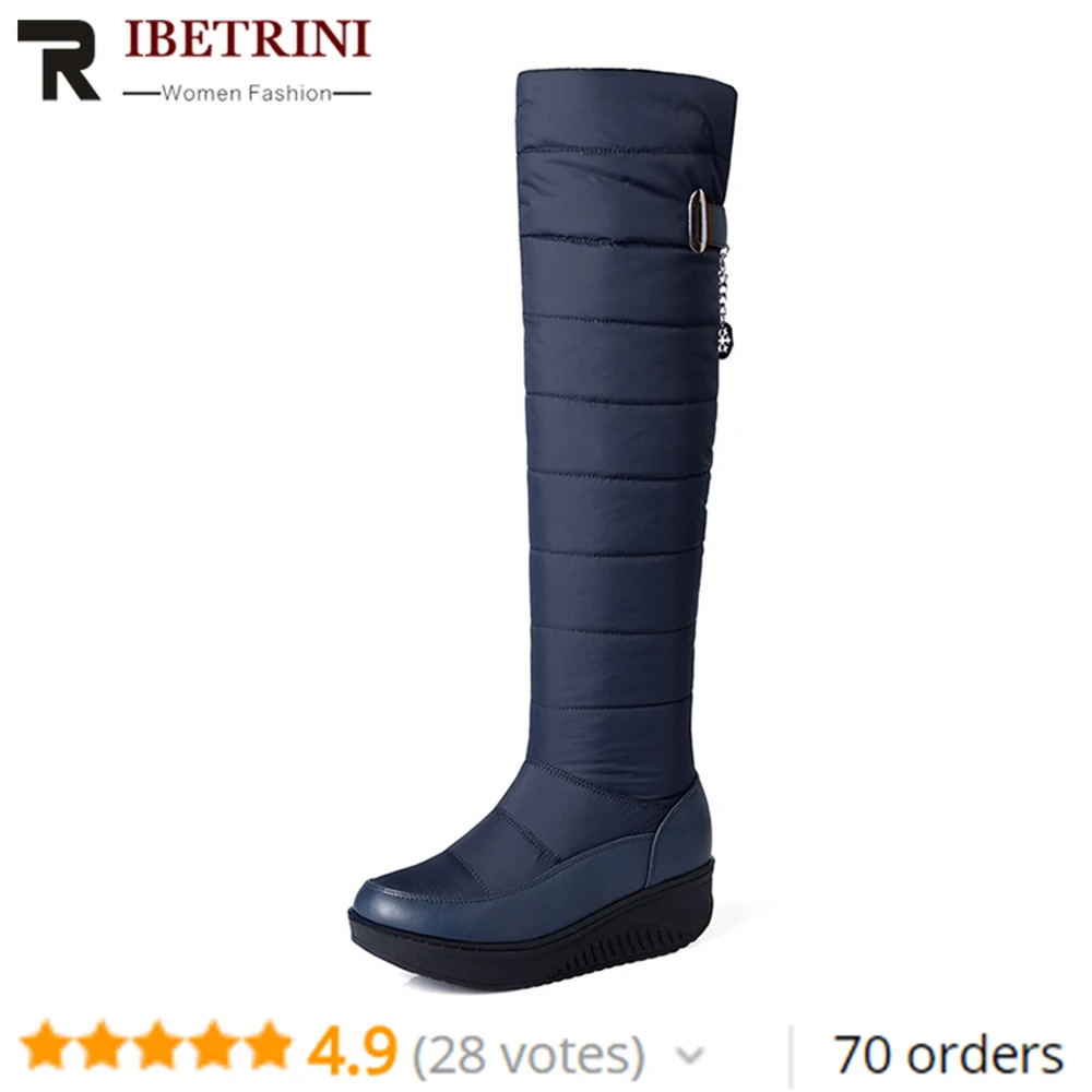 Kopen Goedkoop RIBETRINI Vrouwen Over De Knie Hoge Lange Laarzen Dikke Platte Platform Winter Bont Schoenen Vrouw Snowboots Botas Mujer Plus maat 35 44 Prijs