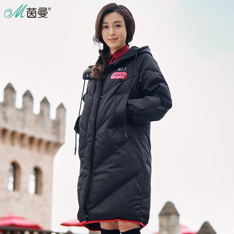 Kopen Goedkoop INMAN 2018 Hooded Afdrukken Leisure Dames Vrouwelijke Meisje Winter Lange Eendendons Leer Warme Jas Vrouwen Jassen Mode Overjas Prijs