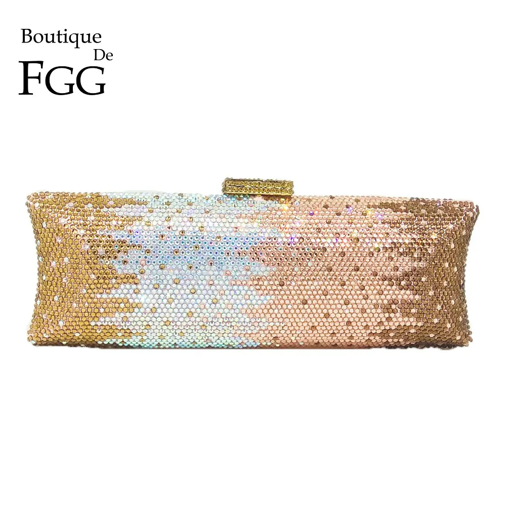 Beste Kopen Boutique De FGG Multi Champagne Vrouwen Kristal Tas Avond Portemonnee Metalen Minaudiere Koppelingen Wedding Party Bruids Diamanten Handtas Goedkoop