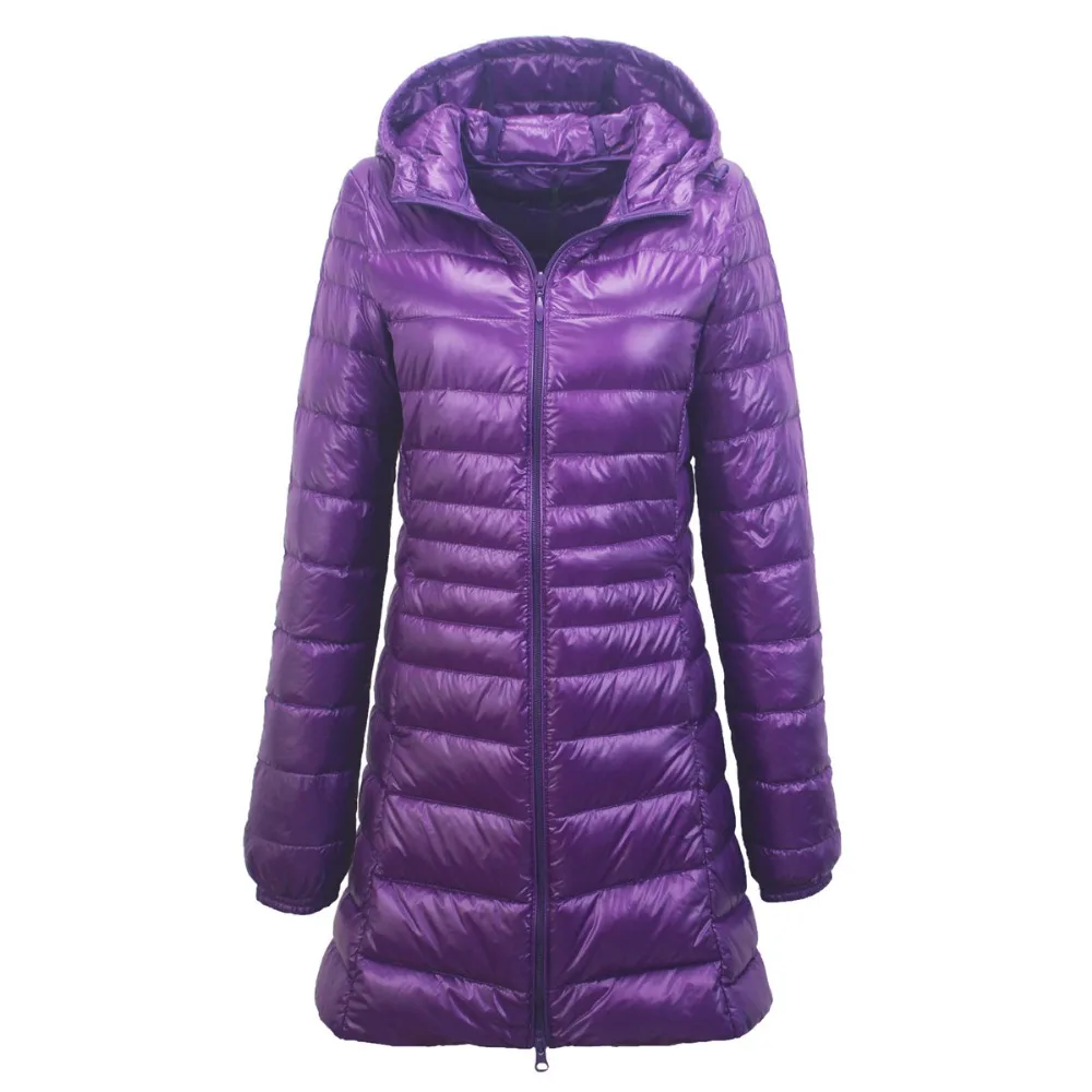 Beste Kopen Winter Ultra Licht Lange Donsjack Vrouw Hooded Veer Jas