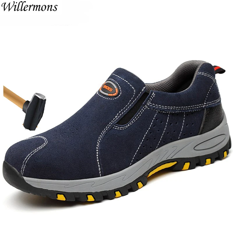 Beste Koop Plus Size mannen Ademende Outdoor Koe Su egrave;de Stalen Neus Werkschoenen Schoenen Mannen antislip Punctie Proof Veiligheidsschoenen Goedkoop