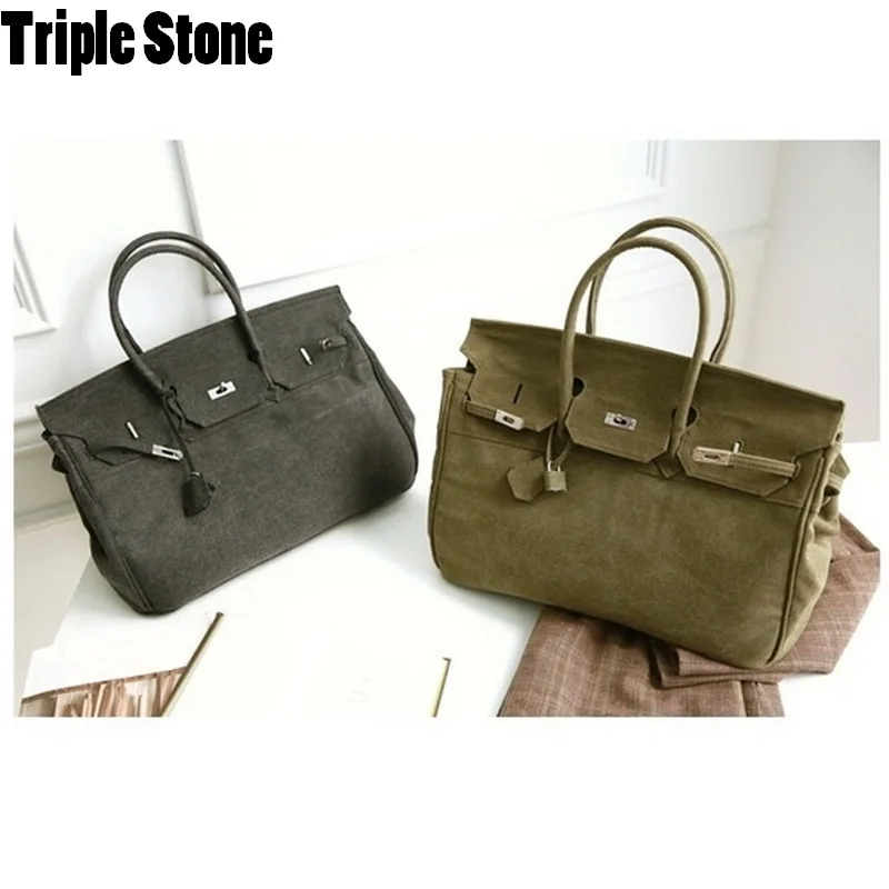Kopen Goedkoop Lock Platina Pakket Vrouwen Canvas Schoudertas Militaire Navy Groen Grote Capaciteit Tiener Handtassen Mannen Reizen bagage Handtas Prijs
