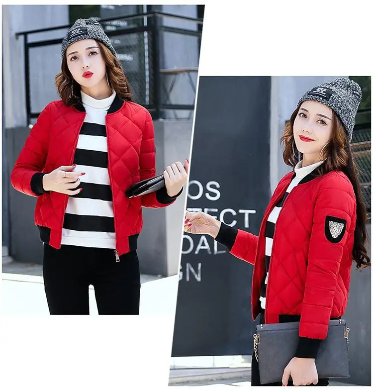 Kopen Goedkoop Herfst Winter Nieuwe Baseball Katoen Gewatteerde Jas Mode Korte Slanke Stand Kraag Epaulet Casual Parka Coat Vrouw Online