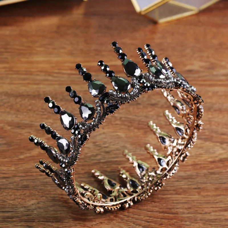 Beste Koop Black Crystal Barokke Vintage Ronde Grote Kroon Koningin