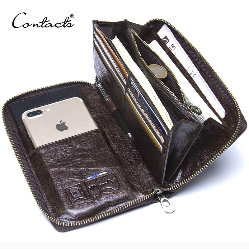 Kopen Goedkoop Echt Lederen Heren Clutch Wallet Brand Mannelijke Kaarthouder Lange Rits Rond Reizen Portemonnee Met Paspoorthouder 5.7 \ Online