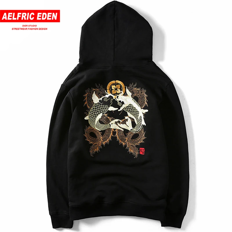 Kopen Goedkoop Aelfric Eden Herfst Man Hoodies Sweatshirts Vis en Draak Borduurwerk Chinese Stijl Toevallige Dunne Lange Mouwen Streetwear DR004 Prijs