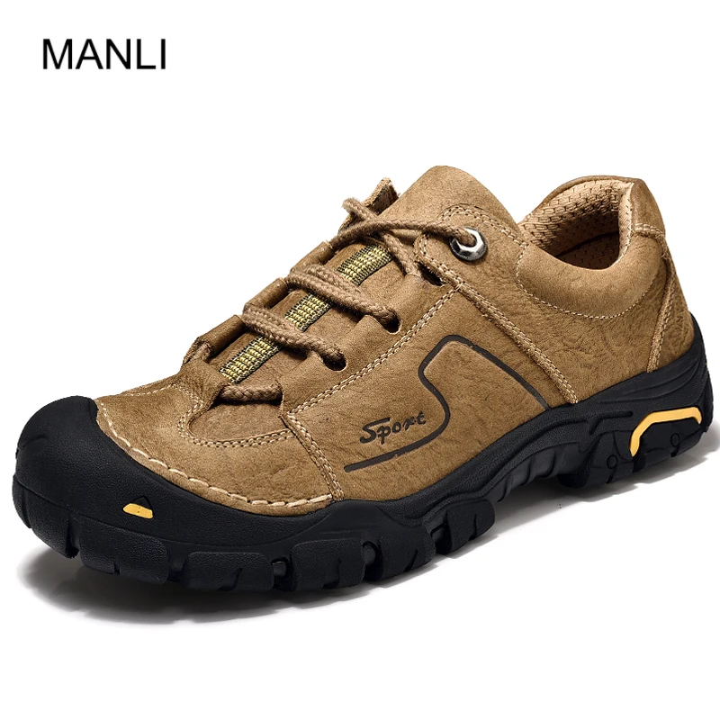 Beste Koop MANLI heren trekking schoenen anti slip mountain schoenen comfortabele Lederen outdoor sneakers voor mannen lopen trekking Goedkoop