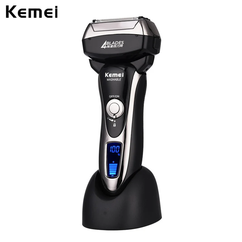 Kopen Goedkoop Kemei 4 Blade Professionele Nat amp; Droog Scheerapparaat Oplaadbare Elektrische Scheerapparaat Scheerapparaat Voor Mannen Baard Trimmer Scheren Machine LCD Display Prijs