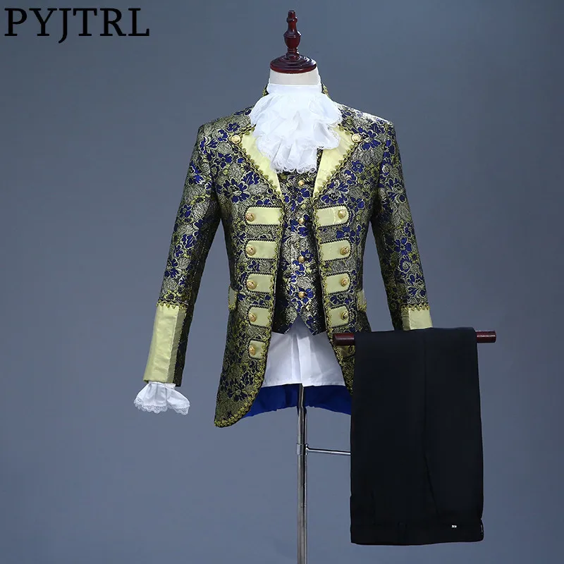 Beste Koop PYJTRL Mannelijke Klassieke Vijf stuk Set Europa Gotische Stijl Paleis Past Marineblauw Paars Pak Mannen Podium Zanger Party Prom Kostuum Goedkoop