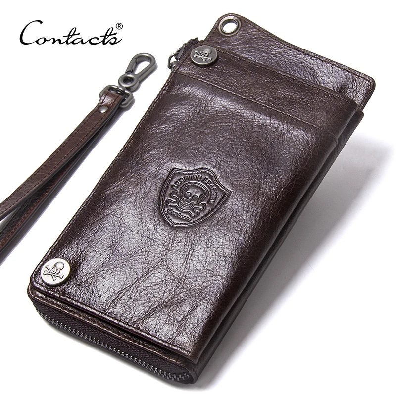 Beste Koop CONTACT #039;S heren Portemonnee Echt Lederen Clutch Man Walet Merk Luxe Mannelijke Portemonnee Lange Portefeuilles Portemonnee Telefoon Zak Voor iPhoneX Goedkoop