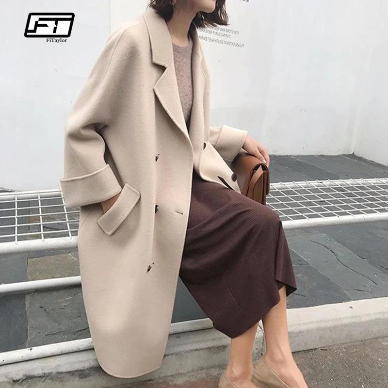 Kopen Goedkoop Fitaylor Wollen Trenchcoats Vrouwen Herfst Winter Dikke Losse Double Breasted Vrouwelijke Toevallige Overjas Warme Wollen Lange Bovenkleding Online